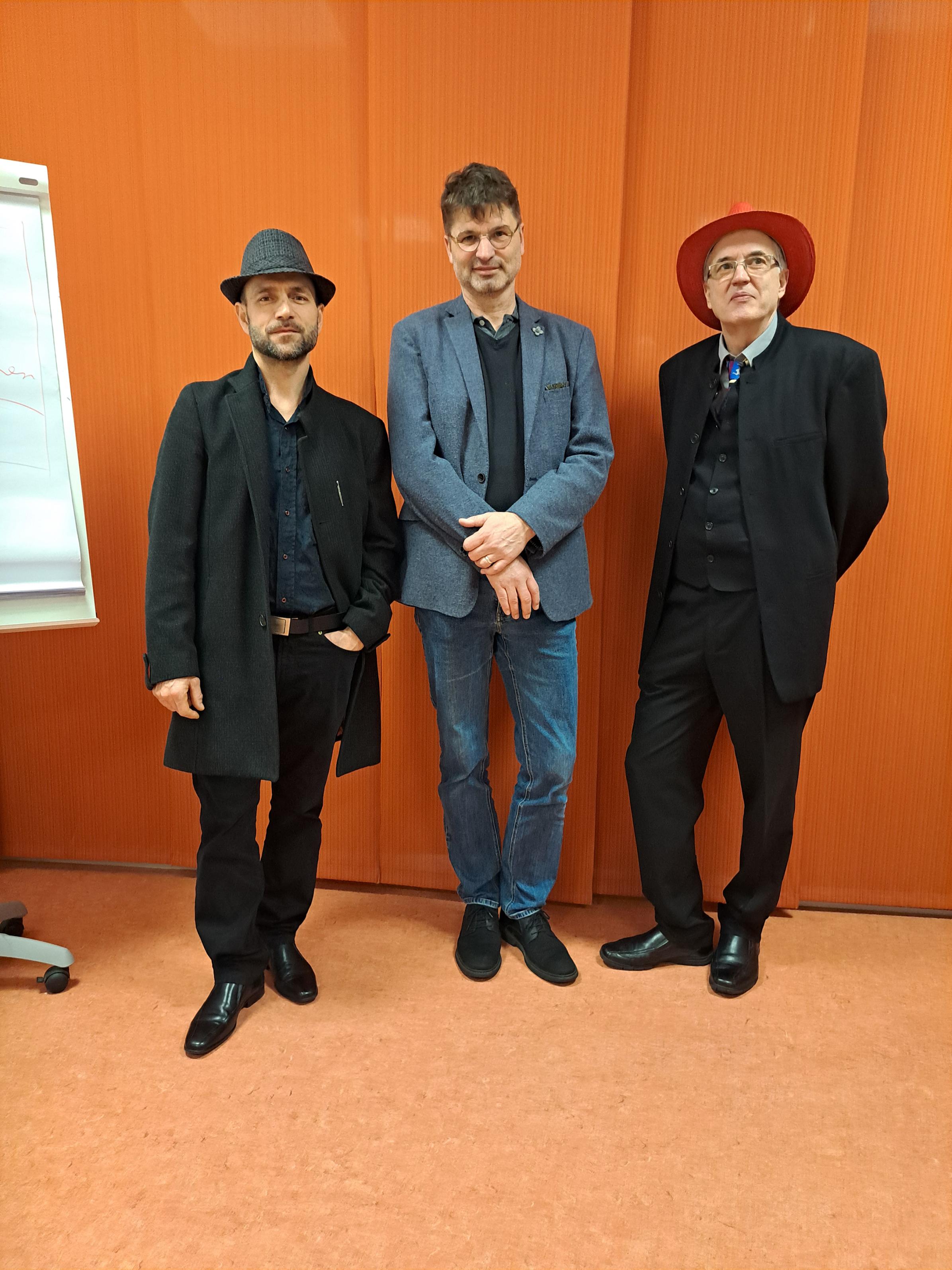 Foto: Die Künstler Emre Imdat (li) und Luís Filipe Palma(re) mit VHS-Leiter Holger Telke (mitte)